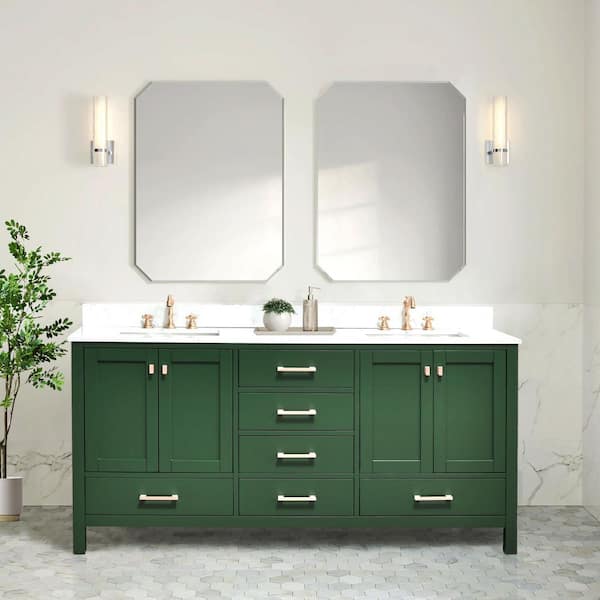Bath Mist 72 in. W. Double Sink Freestanding Bath Vanity in Green with White Engineered Top