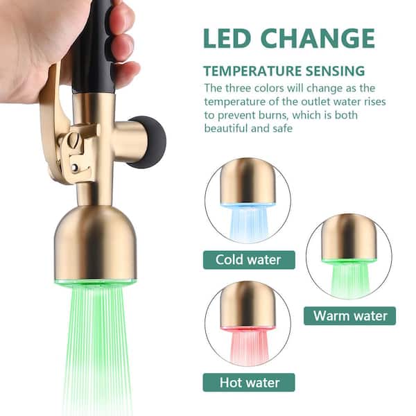 Double Handle Pull Down Sprayer Kitchen Faucet with High Pressure LED 8 in. Kitchen Sink Faucet in Brushed Golden