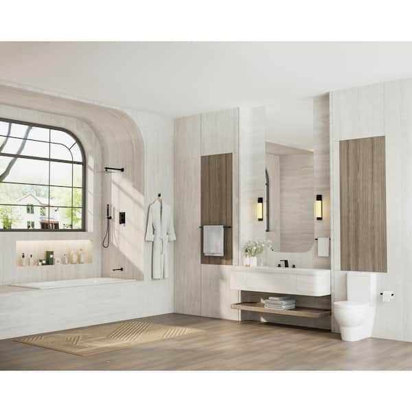 10 in. Double Handles 3-Spray Tub and Shower Faucet 2.5 GPM and Towel Racks in Matte Black Valve Included