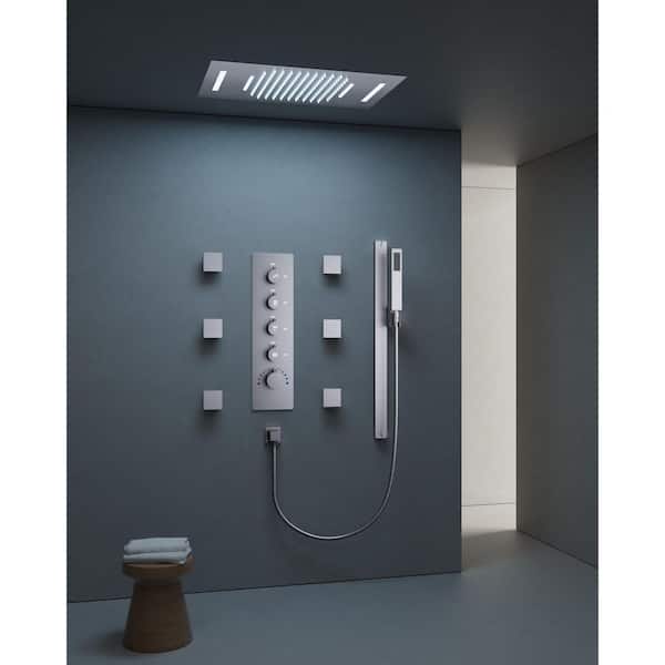 15-Spray LED Mood Lighting 23 x 15 in. Ceiling Mount Dual and Handheld Shower 2.5 GPM with Slider Bar in Brushed Nickel