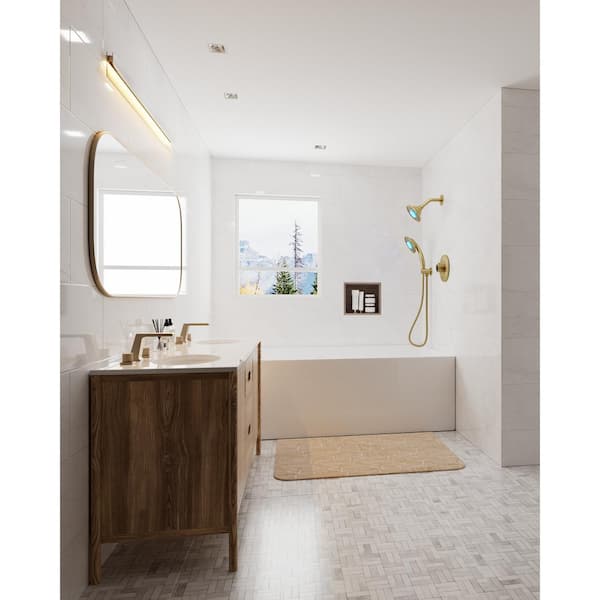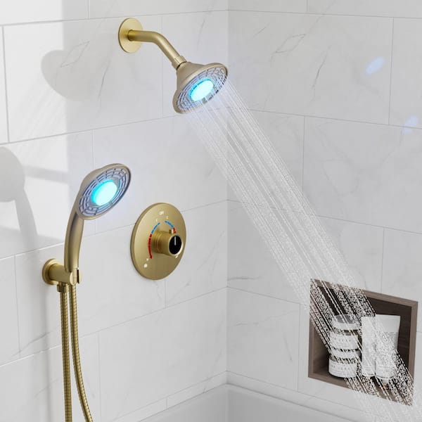 2-Spray 5 in. LED 3-Color Dual Shower Head Wall Mount Handheld Shower Head in Brushed Gold (Valve Included)