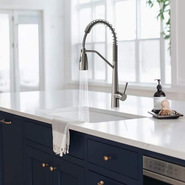 2-Spray Single Handle 20 in. Pull Out Kitchen Faucet with 360° Swivel in Brushed Nickel