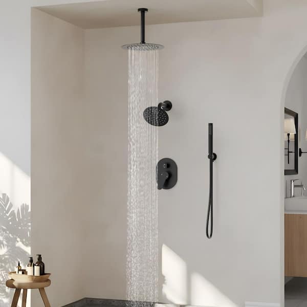 3-Spray 10 and 6 in. Dual Shower Heads Ceiling Mount and Handheld Shower Head in Matte Black (Valve Included)