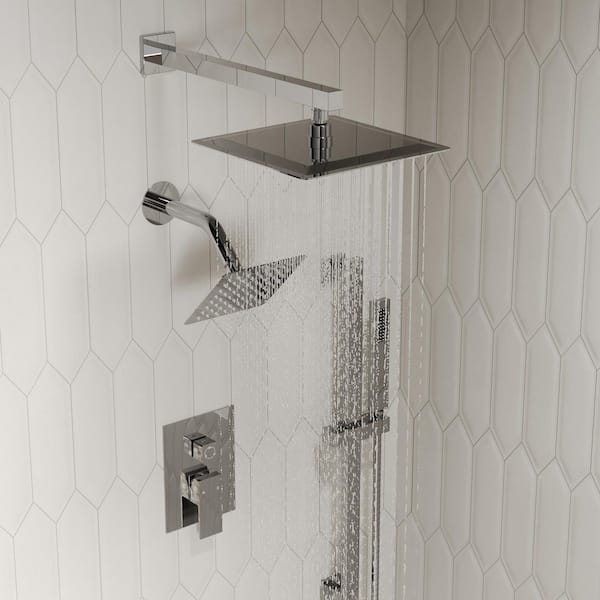 3-Spray 10 and 6 in. Wall Mount Dual Shower Heads and Handheld Shower Head in Chrome (Valve Included)