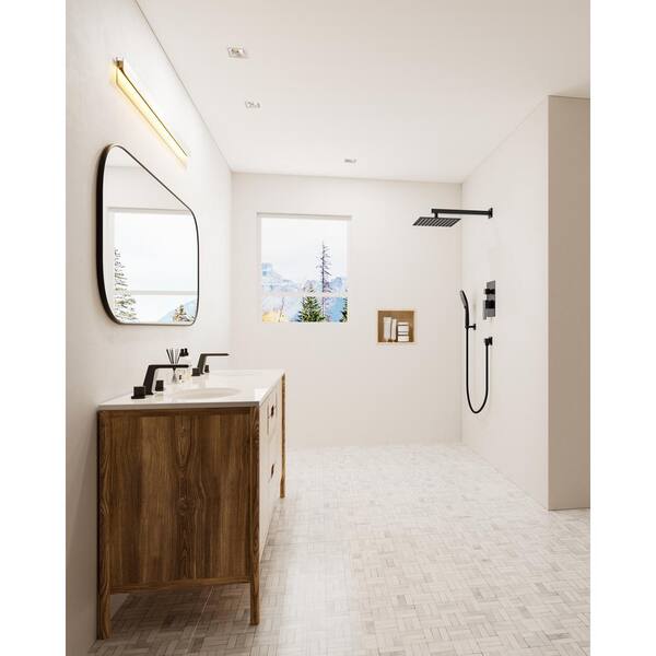 3-Spray 10 in. Wall Mount Dual Fixed and Handheld Shower Head 2.5 GPM in Matte Black and Brushed Gold Valve Included