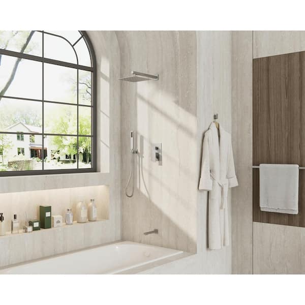 3-Spray 10 in. Wall Mount Dual Shower Head and Handheld Shower Tub Shower Set in Brushed Nickel (Valve Included)