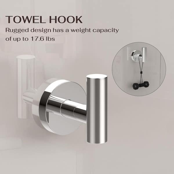 4-Piece Stainless Steel Bath Hardware Set with Towel Bars, Toilet Paper Holder, and Towel Hook in Chrome