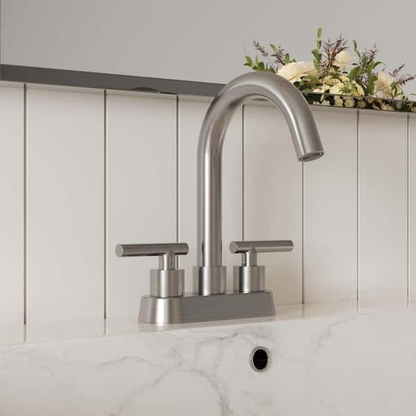 4 in. Centerset Double Handle High Arc Bathroom Faucet with 360° Swivel Spout in Brushed Nickel (Valve Included)