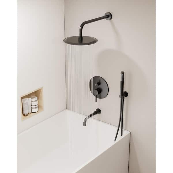 Double Handles 3-Spray 10 in. Wall Mount Shower Head Tub and Shower Faucet in Matte Black (Valve Included)