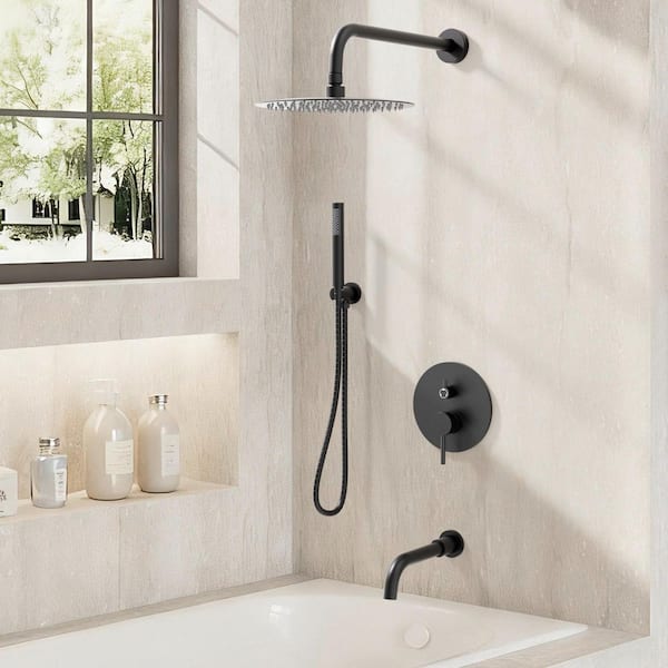 Double Handles 3-Spray 10 in. Wall Mount Shower Head Tub and Shower Faucet in Matte Black (Valve Included)