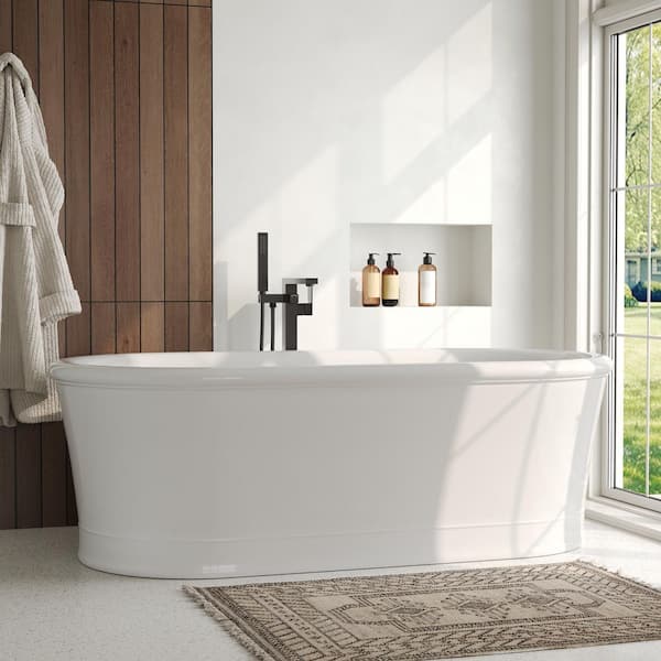 Double Handles Floor Mounted Free Standing Tub Faucets with Hand Shower in Matte Black (Valve Included)