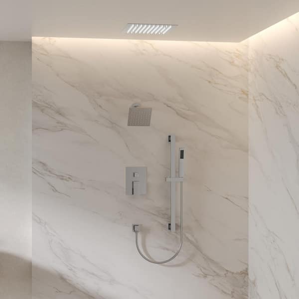 LED 3-Spray 12 and 6 in. Ceiling Mount Dual and Hand Shower with Slider Bar 1.8 GPM in Brushed Nickel (Valve Included)