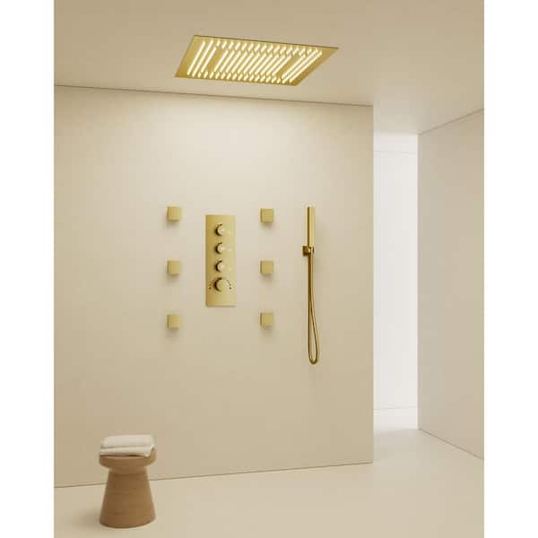LED Mood Lighting 7-Spray 20 in. Ceiling Mount Dual and Handheld Shower 2.5 GPM in Brushed Gold (Valve Included)