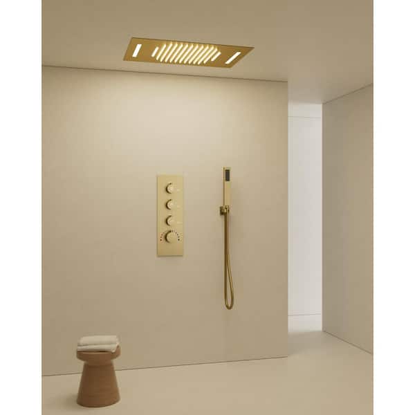 LED Mood Lighting 7-Spray 23 x 15 in. Ceiling Mount Dual and Handheld Shower 2.5 GPM in Brushed Gold(Valve Included)