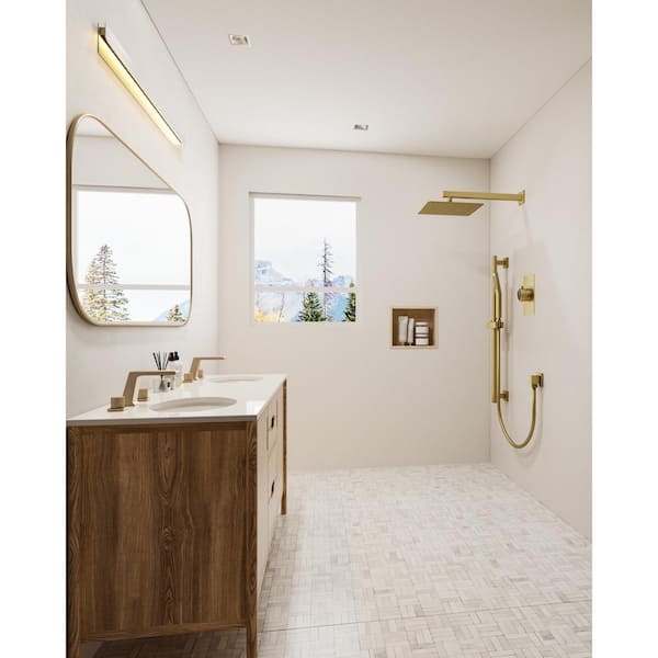 Single Handle 2-Spray Wall Mount 10 in. Square Shower Head Shower Faucet with High Pressure in. Brushed Gold