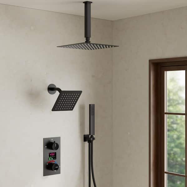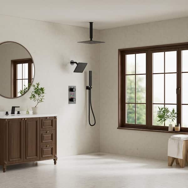 Single Handles 3-Spray Ceiling Mount 12 and 6 in. Shower Head Shower Faucet with Anti Scald in. Matte Black