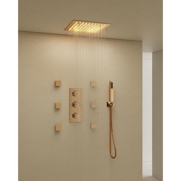 Thermostatic 5-Spray 12 in. Square LED Mood Lighting Shower System with 6-Jets in in Rose Gold (Valve Included)