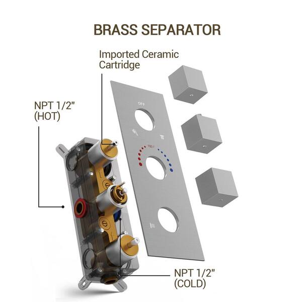 Thermostatic 5-Spray 12 in. and 6 in. Wall Mount Shower System with Slider Bar in Brushed Nickel(Valve Included)