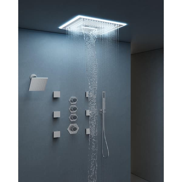 • Thermostatic 64-color 16 in. and 6 in. LED shower head