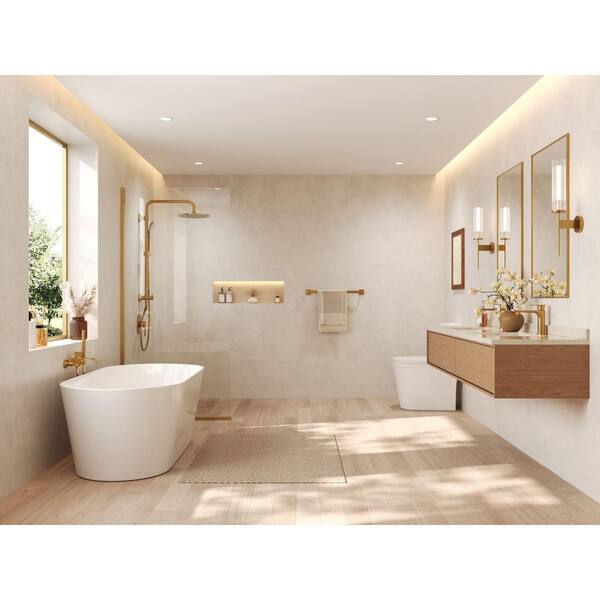 Thermostatic Valve 15-Spray 16 in. x 6 in. Dual Wall Mount and Handheld Shower Head in Brushed Gold