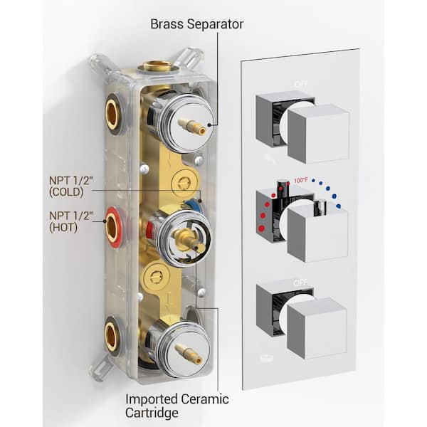 Triple Handles 8-Spray 12 in. and 6 in. Wall Mount Shower Faucet 2.5 GPM with Anti Scald in. Chrome (Valve Included)