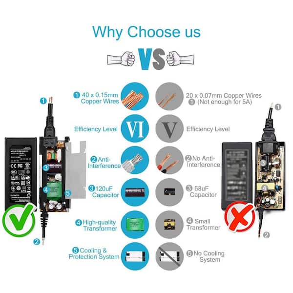 12V 5A 60W Power Supply AC DC Switching Adapter Wall Wart Converter Transformer 100-240v Input 12vdc Output