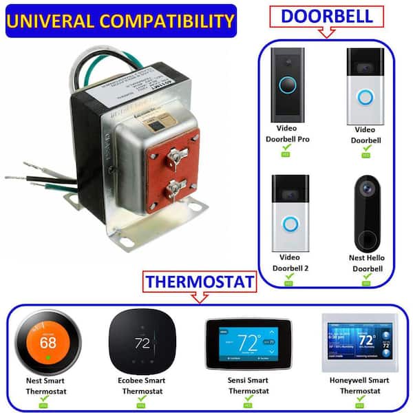 24V 40VA Thermostat Doorbell Transformer Power Supply Compatible with Nest Ecobee Sensi Honeywell Ring Devices