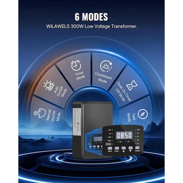 300W Pipe Capacity Weatherproof Low Voltage Landscape Lighting Transformer with Timer and Photocell Sensor ETL Listed