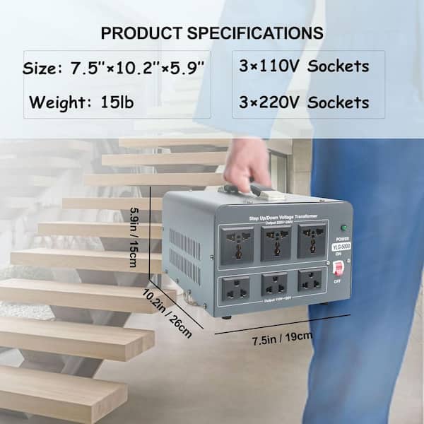 5000W Step Up/Down Voltage Transformer Converter 110/120V - 220/240V with Circuit Breaker Protection Grey
