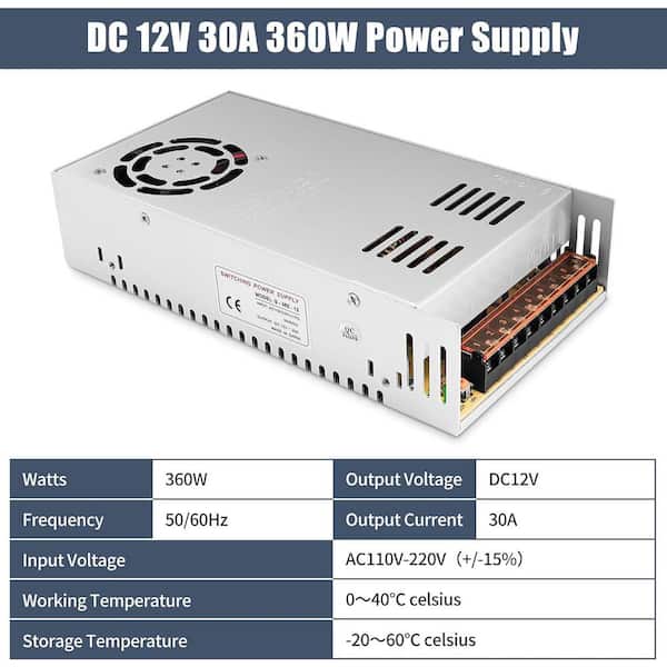 DC 12V 30A 360W Pipe Capacity Universal Switching Power Supply Converter AC 110V to 12V DC for LED Strip 3D Printer CCTV