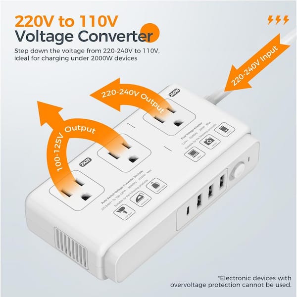 Travel Voltage Converter Adapter with 4 USB Charger 3 AC Sockets EU/UK/AU/IT Plugs 220V to 110V Step Down Transformer