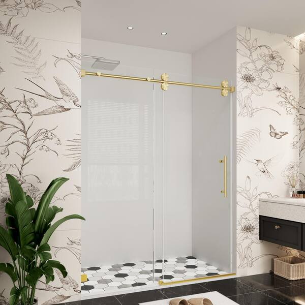 60 in. W x 76 in. H Single Sliding Frameless Bypass Shower Door in Brushed Gold with Easy-Clean 3/8 in. Glass