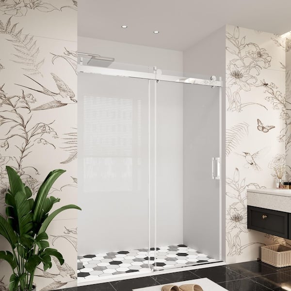 60 in. W x 76 in. H Single Sliding Frameless Soft Close Bypass Shower Door in Chrome with 3/8 in. Clear Glass