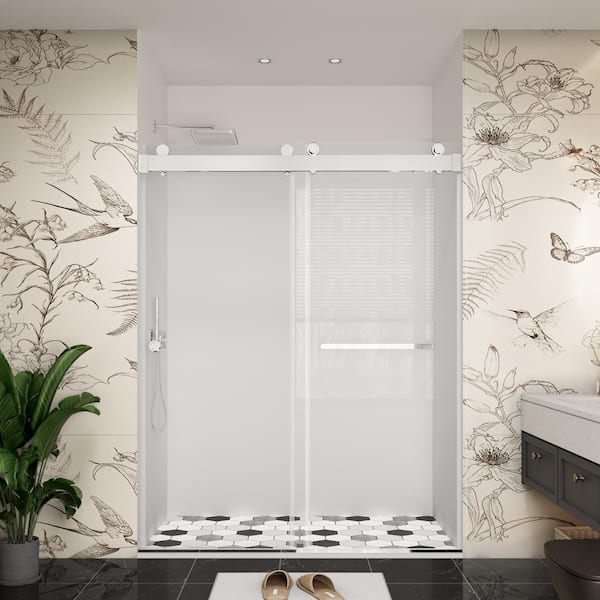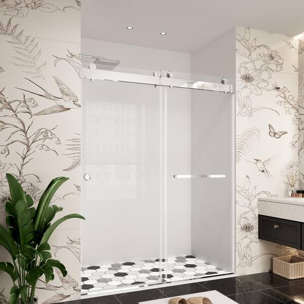 60 in. W x 79 in. H Double Sliding Frameless Soft Close Bypass Bath Shower Door in Chrome with 3/8 in. Clear Glass