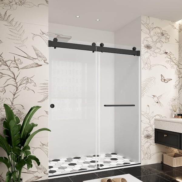 60 in. W x 79 in. H Double Sliding Frameless Soft Close Bypass Bath Shower Door in Matte Black with 3/8 in. Clear Glass