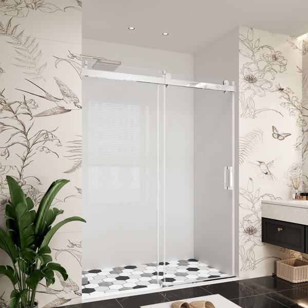 60 in. W x 79 in. H Single Sliding Frameless Soft Close Bypass Shower Door in Chrome with 3/8 in. Clear Glass