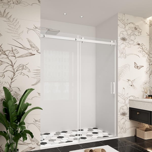 60 in. W x 79 in. H Single Sliding Frameless Soft-Closing Bypass Shower Door in Brushed Nickel with 3/8 in. Clear Glass