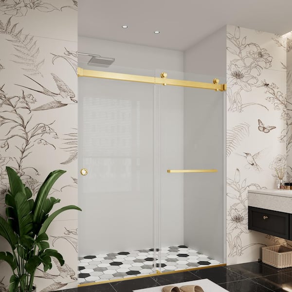 72 in. W x 72 in. H Double Sliding Frameless Bypass Bath Shower Door in Brushed Gold with Easy-Clean 3/8 in. Glass