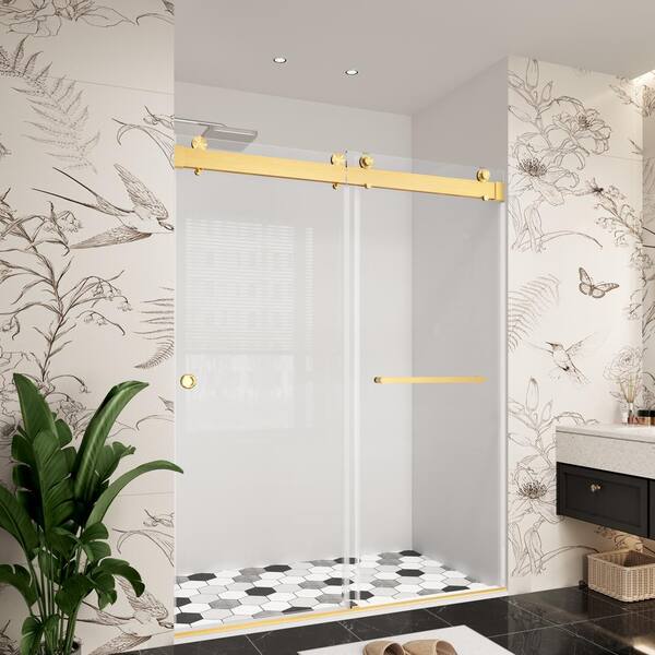 72 in. W x 76 in. H Double Sliding Frameless Soft Close Bypass Bath Shower Door in Brushed Gold with 3/8 in. Clear Glass
