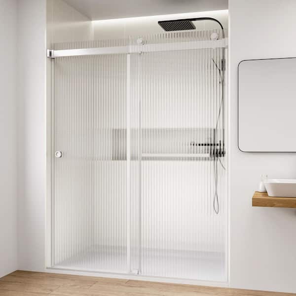 Fluted / Reeded Glass 60 in. W x 76 in. H Double Sliding Frameless Bath Shower Door in Brushed Nickel