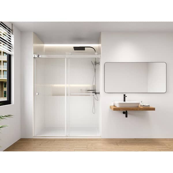 Fluted / Reeded Glass 60 in. W x 79 in. H Double Sliding Frameless Bath Shower Door in Chrome