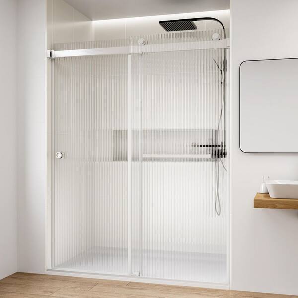 Fluted / Reeded Glass 66 in. W x 76 in. H Double Sliding Frameless Bath Shower Door in Brushed Nickel