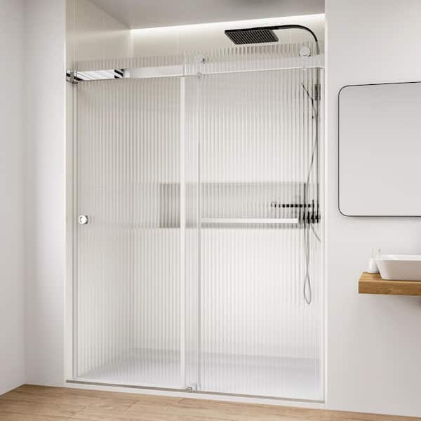 Fluted / Reeded Glass 66 in. W x 76 in. H Double Sliding Frameless Bath Shower Door in Chrome