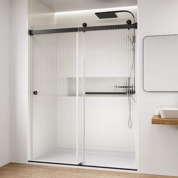 Fluted / Reeded Glass 66 in. W x 76 in. H Double Sliding Frameless Bath Shower Door in Matte Black