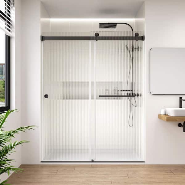 Fluted / Reeded Glass 72 in. W x 76 in. H Double Sliding Frameless Bath Shower Door in Matte Black