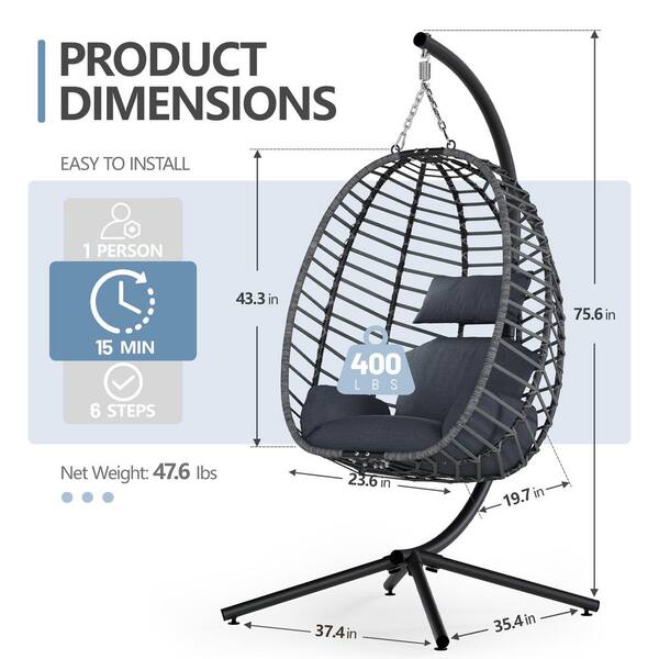 1-Person Wicker Patio Swing Egg Chair with Stand and Cushion