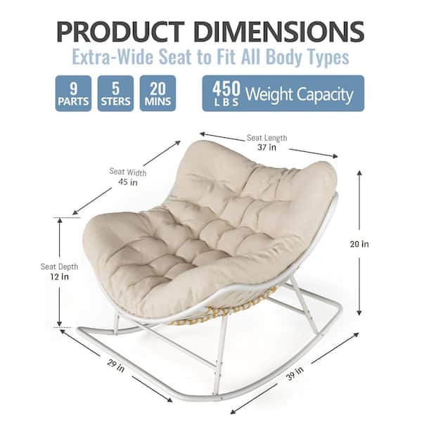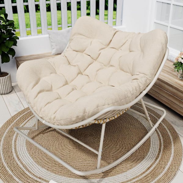 Oversized Metal Outdoor Rocking Chair with Beige Cushion