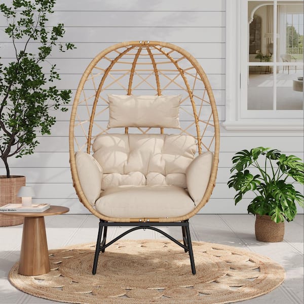 Patio Wicker Indoor/Outdoor Egg Lounge Chair with Remove Beige Cushions