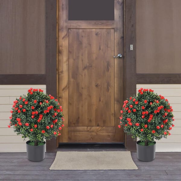 1.7 ft. (20.47 in. ) Artificial Boxwood Tree Artificial Potted Plants with Pot 2-Pack