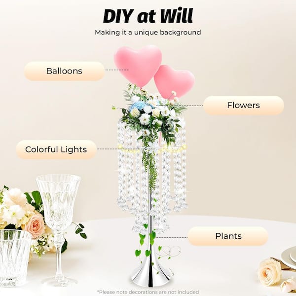 10-Pieces 21.9 in. Tall Wedding Centerpieces Flower Vases Silver Metal Decoration Flower Stand